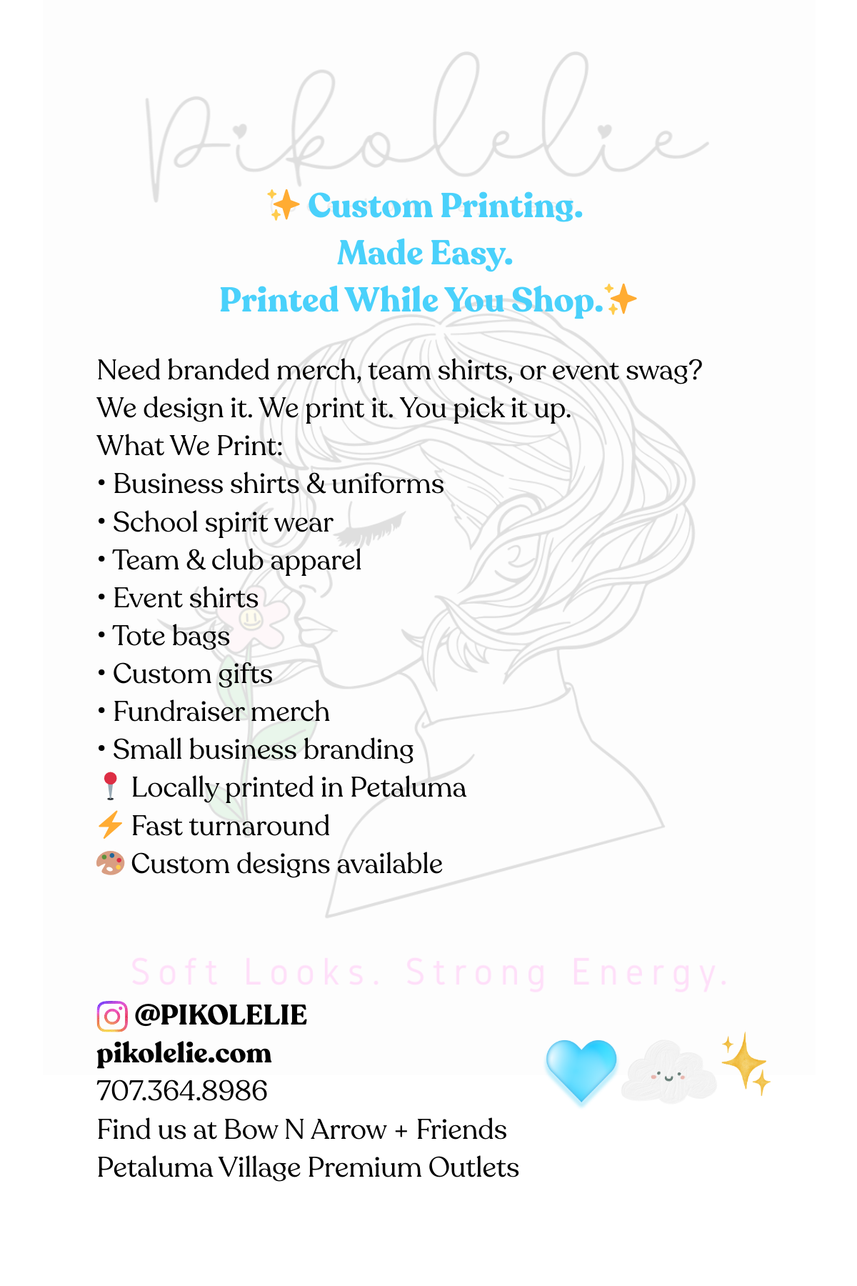 From cozy hoodies and custom t-shirts to tote bags and small business merchandise, we help bring your ideas to life with high-quality printing and a fun in-store experience.