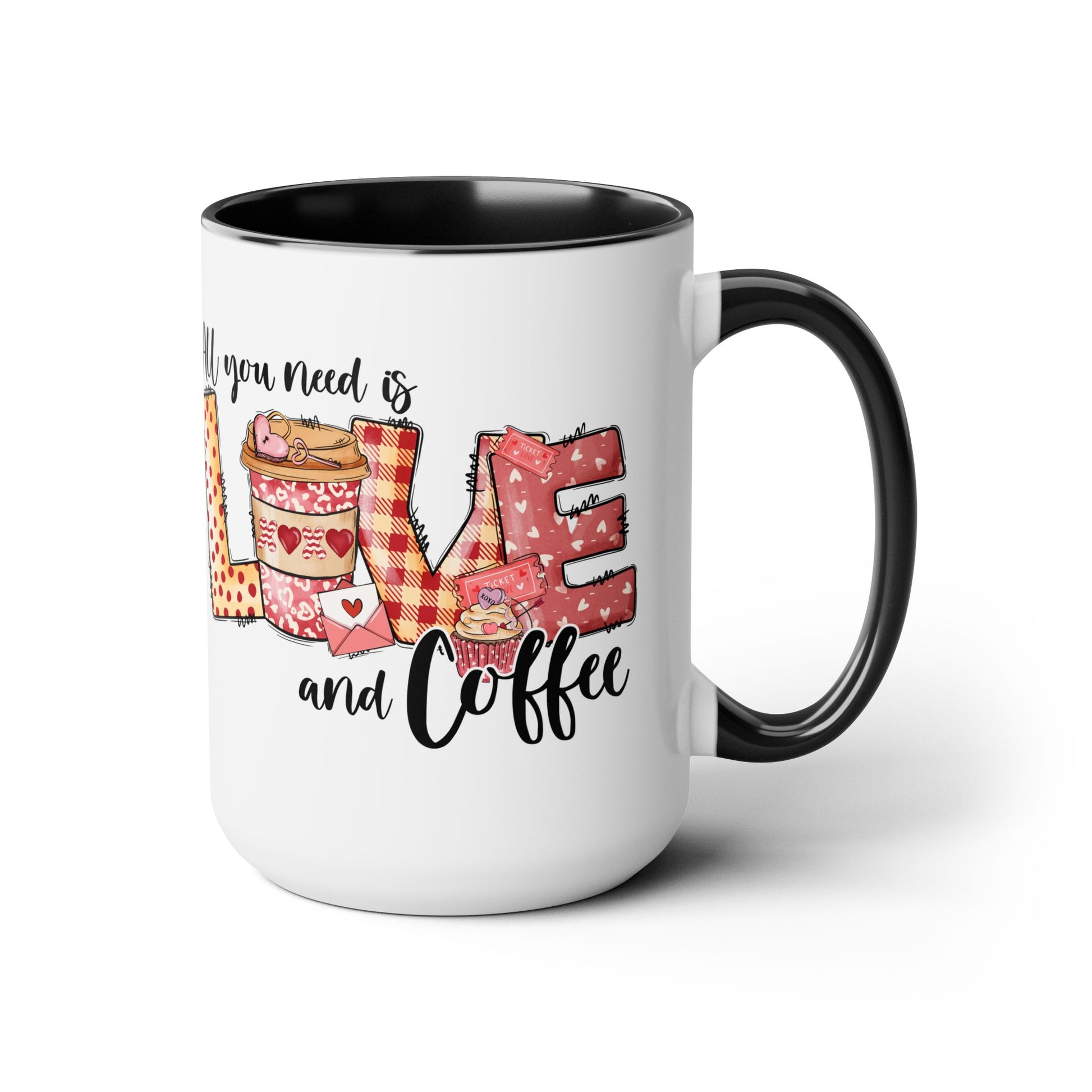 Love and Coffee Two-Tone Coffee Mug, 15oz